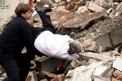 如果你走在路上被工地的铁条绊倒,你第一直觉会怎么做?